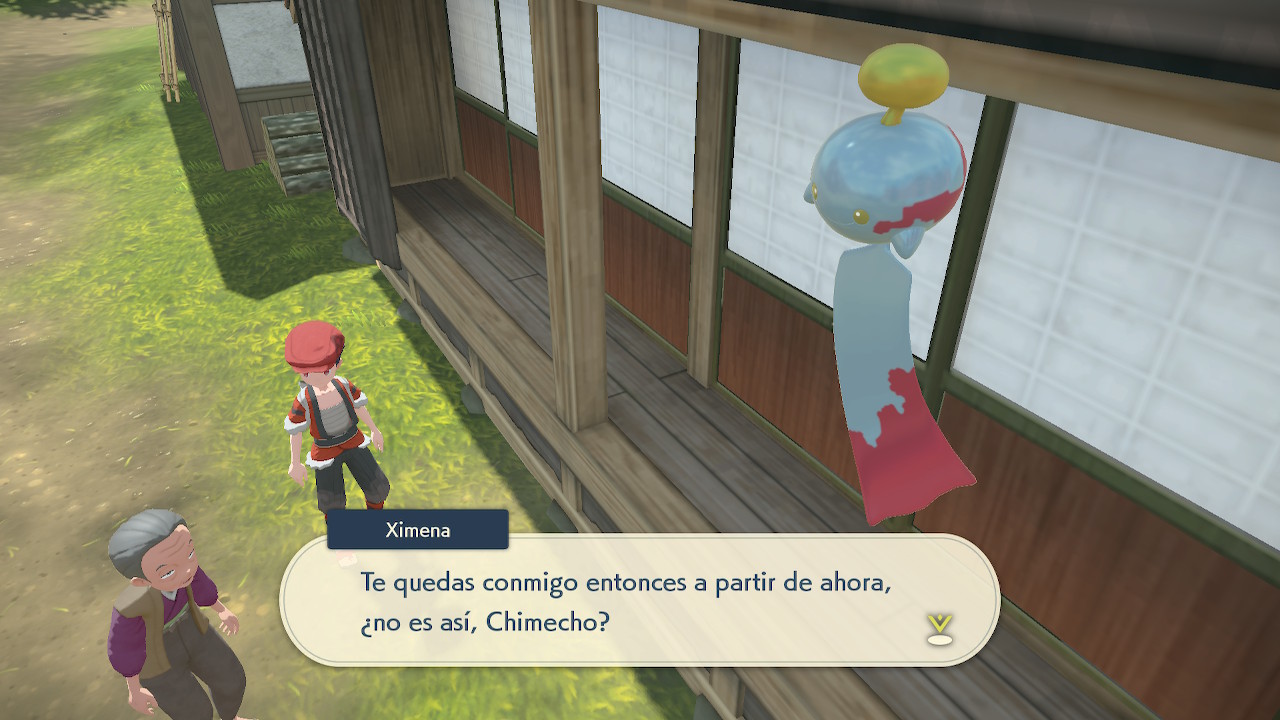 Parece que un Chimecho se ha instalado bajo el alero de una casa. Ve a hablar con Ximena para obtener más información al respecto.