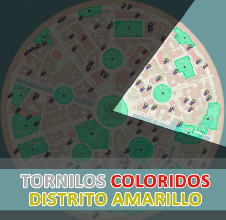 En el Distrito Amarillo se puede encontrar un total de 19 Tornillos Coloridos.