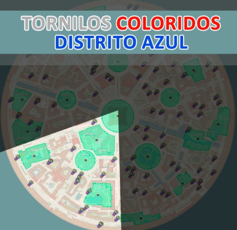 En el Distrito Azul se puede encontrar un total de 19 Tornillos Coloridos.