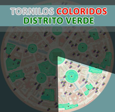 En el Distrito Verde se puede encontrar un total de 22 Tornillos Coloridos.
