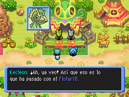 Al llegar a la zona del Bazar verás a Dusknoir charlando con los Kecleon. Se acercarán y Dusknoir les preguntarán si son del Pokégremio, luego Kecleon os preguntará que necesitan. Le preguntarán lo que les dijo Chatot y ellos te responderán que no tienen previsto vender Manzanas Perfectas. Después verás venir a los hermanos Azurill y Marill. Luego ellos te dirán que el objeto que buscaban; el Flotarill, un objeto muy valioso, ha sido visto en la playa así que van a buscarlo. Pero en ese momento Zubat y Koffing escuchan y causarán problemas. Los Kecleon le preguntarán a Dusknoir que es un Flotarill, y el le responderá que es un objeto especifico de Azurill y que se consigue intercambiando varios tesoros. Luego volverán al Pokégremio.