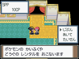 Al ganar cada batalla, ganarás Puntos de Castillo. Como los Pokémon no se pueden curar, puedes cambiar los puntos que haz ganado aquí para comprar curas para PS, PP, ver el equipo de nuestro oponente o conseguir un objeto. Estos puntos solo pueden ser utilizados dentro del Castillo de Batalla.