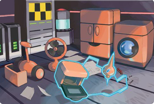 Cuando vayas a la habitación, verás 5 aparatos diferentes en el suelo. Si tienes a Rotom en tu equipo, puedes ir a cualquiera de ellas, y seleccionarlas. Una vez seleccionado, Rotom poseerá el dispositivo y se transformará a una de las nuevas formas Rotom. Sin embargo, hay un par de cosas que destacar.