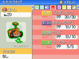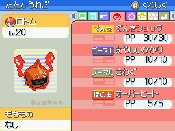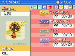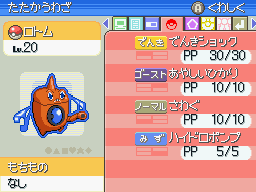 Cuando selecciones el dispositivo y Rotom tome posesión de ella, Rotom tendrá la habilidad de aprender un nuevo ataque. Esto depende de la forma que vaya a tomar. Este ataque sólo puede ser mantenido en esta forma particular. Una vez que cambie a otra forma, Rotom olvidará ese ataque y aprenderá uno nuevo.