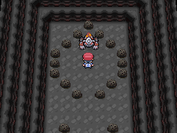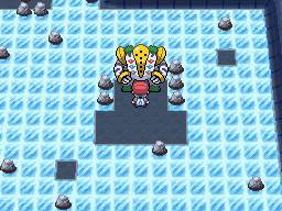 Después de conseguir el Pokédex Nacional, ahora tendremos acceso al Templo de Puntaneva (Snowpoint Temple). Hay que llevar a Regirock, Regice y Registeel en el equipo e ir todo el camino hacia la parte inferior, deslizandonos por el puzzle de hielo. Una vez allí, veremos a Regigigas dormido en medio del lugar. Vamos hasta el e iniciamos la batalla. Esta en nivel 1 así que lleva un pokemon de bajo nivel para luchar.