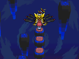 Giratina se encuentra justo al final del Mundo Distorsión (Distortion World). Recomendamos curarnos antes de ir a combatir contra el. Su Forma Origen (Origin Forme) es muy poderosa. Esta en nivel 47. Despues de haberlo capturado, cuando dejemos el Mundo Distorsión (Distortion World), Giratina volverá a su Forma Alternativa (Altered Forme), sin embargo al volver encontraremos un objeto cerca y con ese objeto podremos cambiar de forma a volundad en el mundo normal.