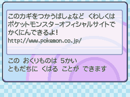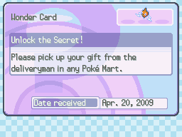 Después de haber recibido el regalo, tenemos que ir recogerlo de un cartero que estará en un PokéTienda (PokéMart). Este nos dará el Objeto que este disponible en el juego, el cartero se puede encontrar en cualquiera de las PokéTiendas (PokéMart) dentro de Sinnoh por lo que puede conseguirse en cualquier pueblo.