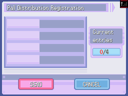 Algunas tarjetas nos permiten enviarlas a algunos amigos. Estas sólo se pueden enviar una cierta cantidad de veces, por ejemplo, la Llave Secreta (Secret Key) sólo puede ser enviada cinco veces. Cuando se selecciona esta opción, iremos a un menú y la DS iniciará el envío de señales inalámbricas. Si nuestro amigo selecciona la opción "Recibir de un Amigo" en su Regalo Misterioso (Mystery Gift), aparecerá en el lobby como se ve en la imagen y será capaz de recibir el regalo.