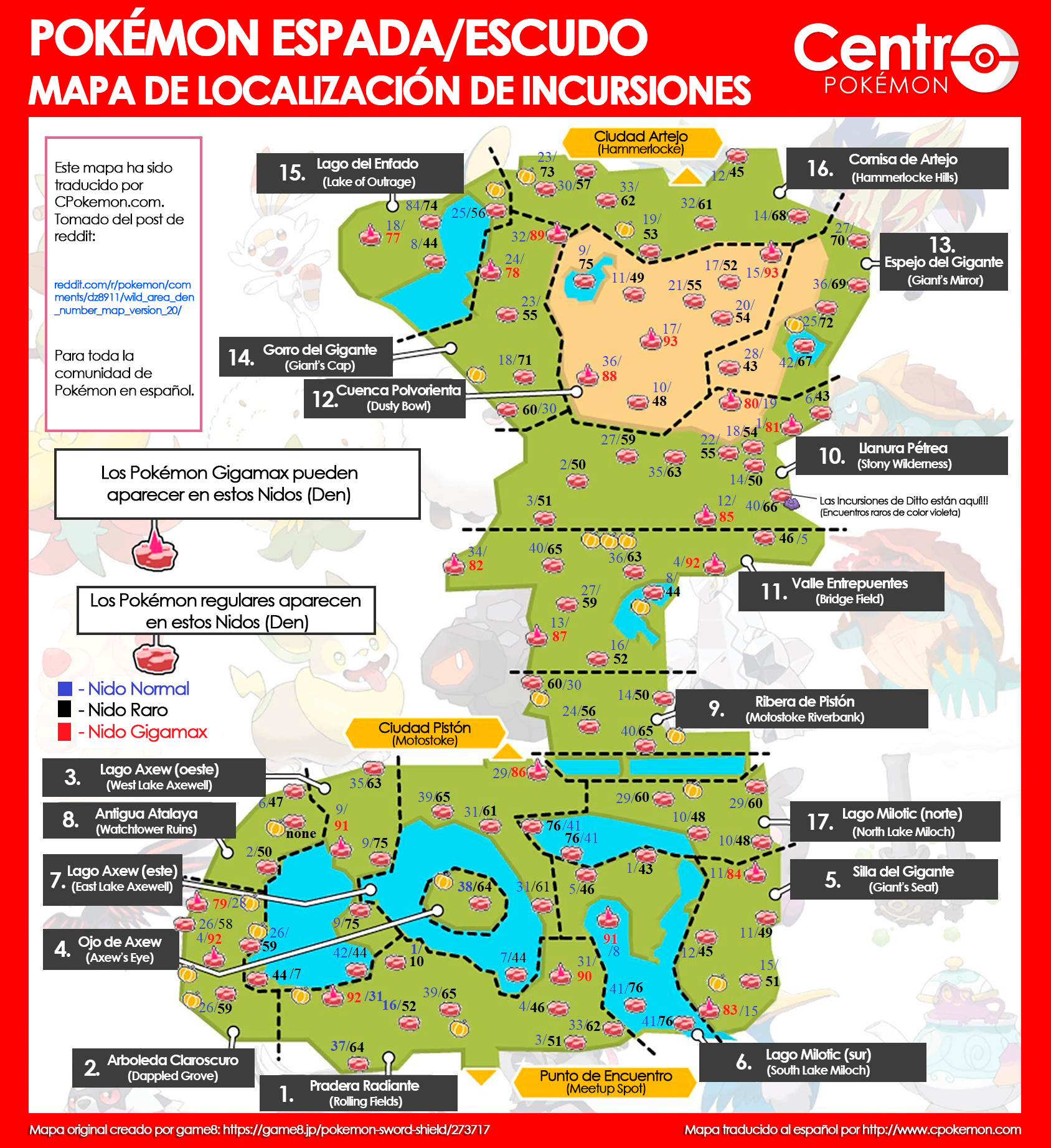 Recompensa de Incursión Dinamax en Nidos 1, 48 (Espada) y 81 (Espada). Trader de Vatios en el Área Silvestre por 8000 Vatios (Cambia periódicamente) |