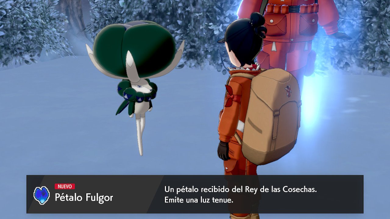 Calyrex te pedirá que le refresques la memoria para crear las Riendas Unión y luego hará brotar un Pétalo Fulgor azul. Con eso, más la Crin Negra o Blanca deberás hacer las riendas. Busca al Alcalde para trenzar las riendas en su casa de Villa Helada, aunque lo terminará haciendo Peony.