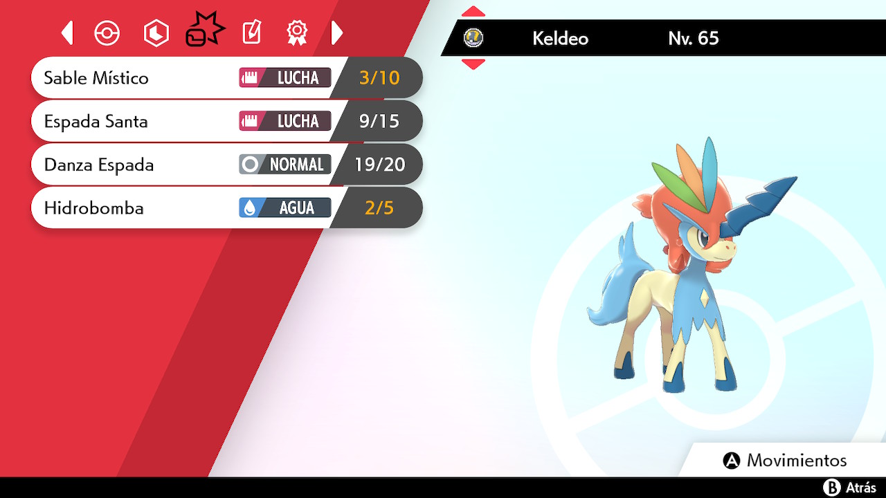 Este Keldeo al momento de capturarlo tendrá los siguientes movimientos: