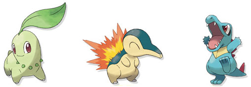 Pokémon iniciales, Chikorita, Cyndaquil y Totodile
