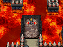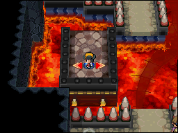 Pósate en el circulo azul y pisa la flecha superior. Haz girar la plataforma una vez y luego muevete hacia la derecha. Hazla girar dos veces de modo que quede de frente a la tierra firme y pisa la flecha derecha. Enfréntate a los ENTRENADOR. GUAY y verás otro circulo amarillo para volver al comienzo, pero nosotros no somos débiles, así que seguiremos sin descansar. Llegaremos a la tercer plataforma… ¡Aquí vamos!