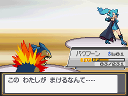 Oh sí, hemos ganado… ¡Somos los mejores entre los mejores! ¡Ahora dame la maldita medalla, debilucha peliazul! ¿Qué dices? ¿Qué no me la darás? ¡Yo te voy a enseñar %$&@#! Bueno, parece que eso no funcionó… No nos queda otra amigo, salgamos del Gimnasio y vayamos a la Guarida Dragón que está detrás de él.