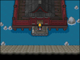 Haz SURF hasta estar frente al remolino en el agua y utiliza la MO05 TORBELLINO (Whirlpool) para pasar sobre él. Sigue hacia el Sur y llegarás a una especie de santuario. Allí dentro el Líder del lugar te hará varias preguntas, responde la opción que quieras, ya que aunque te equivoques te repetirá la pregunta, así que no hay problema.