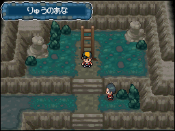 Entra en la cueva y aparecerás en una caverna cuadrada de 2×2 con una escalera en medio, ten cuidado de no perderte y bájala.