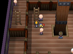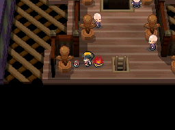 Ve hacia abajo y vénce al PENSADOR. Sigue hacia la derecha y sube las escaleras. Recoge la POCIÓN (Potion) de la izquierda y preparate para los últimos tres combates antes del líder. (Nuestro Cyndaquil ha evolucionado a Quilava ¡Yahoo!)