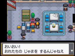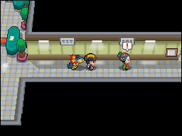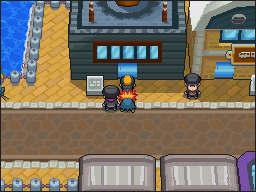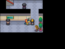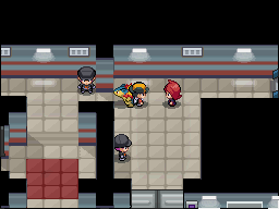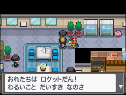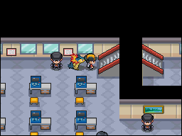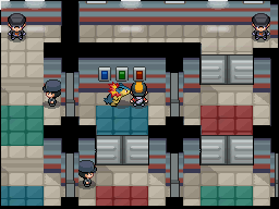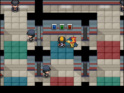 ¡Ya burlamos toda la seguridad en las calles, yahoo! Ve hacia la escalera para subir al primer piso pero un Recluta del Team Rocket nos detendrá el paso, como no formamos parte del equipo, no nos dejará pasar, así que vamos a unirnos a ellos. ¡Hey espera! ¡Era broma! ¡Mejor aún, vamos a disfrazarnos como un Recluta del Team Rocket! Ve hacia el Subterráneo y baja las escaleras.