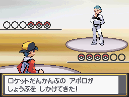 Entra en el ascensor y subirás hacia la cima. Sal de él y te encontrarás con un sujeto que dice ser Apollo, el tercer Ejecutivo del Team Rocket. Pero a nosotros nos importa poco quien sea, ¡Acaba con él!