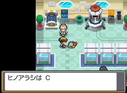 Acto seguido te señalará la máquina que está a su derecha y te pedirá que elijas a uno de los tres Pokémon que hay en ella para que te acompañe en tu viaje. Al salir del Laboratorio, el ayudante de Elm te dará 5 unidades de POCIÓN (Potion) que le curarán 20PS a tu Pokémon.