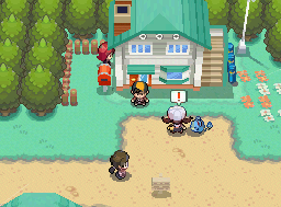Sal de tu casa y un Marill chocará contigo, pronto vendrá tu vecina Kotone/Hibiki y se lo llevará. Dirígete hacia el Laboratorio del Profesor Elm (el gran edificio a la izquierda de tu casa). Fuera del Laboratorio te encontrarás con un extraño niño pelirrojo espiándolo por una ventana, si le hablas te dirá que molestas y te empujará.