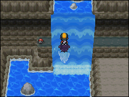Las Cataratas Tohjo… ¿Sabes por qué se las llaman así? Yo no, dímelo. ¡Hey, era broma! Es una pequeña cueva que conecta una pequeña parte de Kanto con el camino hacia la Liga Pokémon y está separada por dos grandes cataratas, y como ya te habras imaginado, aquí haremos uso de la MO07 CASCADA (Waterfall). Da la vuelta y sube por la escalera Este, al final del camino te encontrarás con una PIEDRA LUNAR (Moon Stone). Sal de aquí para volver a la Ruta 27.