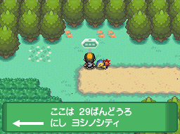 Continua hacia el Oeste y verás que el suelo comienza a cambiar, eso nos indica que hemos llegado a Ciudad Cerezo (Cherrygrove City).
