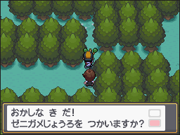 La hermana menor de la dueña de la Floristeria te dará el Objeto Clave CÁPSULA BONGURI (Apricorn Case) y unas Bayas como recompensa. Ve hacia la derecha y habla con el gordito y te dará la MO 06 GOLPE ROCA (Rock Smash).