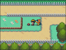 Ve hacia abajo, luego a la derecha para encontrar el objeto MÁX. POCIÓN (Max. Potion). Ahora sigue directo el camino principal para recoger el BONGURI BLANCO (White Apricorn). Luego ve al Oeste y cuando subas las escaleras estarás en la Ruta 39.