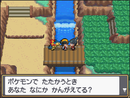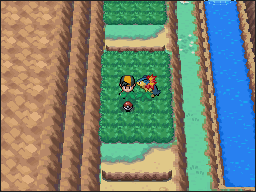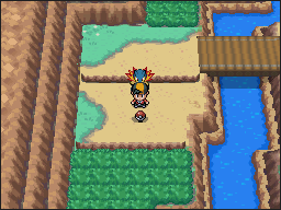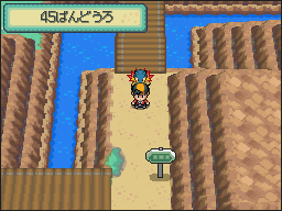 Cruza el puente y estarás en la Ruta 45. Este lugar es conocido como Camino Montaña por su longitud, y además, es una de las dos salidas que tiene Pueblo Primavera (New Bark Town) para conectarse con el resto de Johto. Esta ruta tiene dos salidas: La Cueva Oscura (Dark Cave) que nos llevará hasta la Ruta 31 y entrada a Ciudad Malva (Violet City), pero como nuestro objetivo es Pueblo Primavera, tómaremos el camino del Sur.