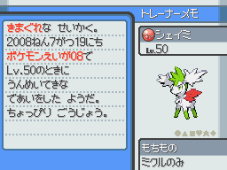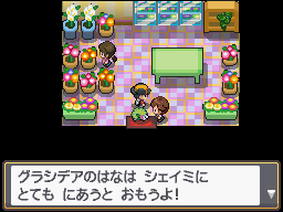 Una nueva forma para Shaymin también fue introducida en Pokémon Platino, se trata de su Forma Cielo. Para cambiar de Forma Terrenal a Forma Cielo es necesario el Objeto Clave Flor Gracídea, que lo obtendremos de la hija de la dueña de la Floristería en Ciudad Trigal (Goldenrod City) si llevamos con nosotros a un Shaymin capaz de transformarse. Solamente necesitas seleccionar el objeto y equiparselo a Shaymin cuando quieras que se transforme. Sin embargo, Shaymin sólo puede estar en Forma Cielo mientras que el Sol esté en el cielo, limitando su horario de transformación desde las 5am a 8pm.