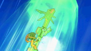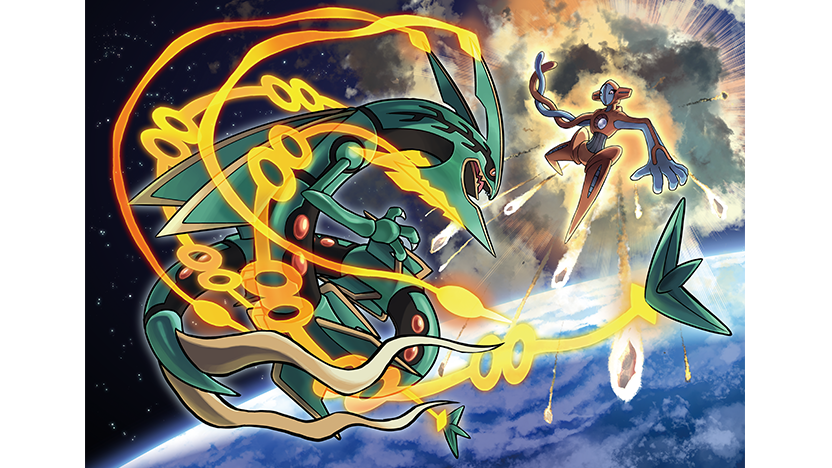 En los últimos momentos del episodio hay un enfrentamiento épico entre Rayquaza y Deoxys en el espacio.