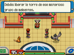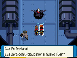 Podrás subir por las escaleras. Sal de allí pero la puerta estará bloqueada. Darkrai aparecerá del suelo y te sacará de allí. Entablarás amistad con él. Sube las escaleras por la derecha, avanza hacia abajo y sube.