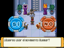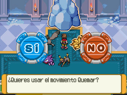 Ve por el camino de la derecha hasta llevar a una habitación con Vulpix. Captura uno, sube las escaleras y sal por la izquierda. Avanza hasta llegar a una puerta cerrada. Prende la antorcha con el Movimiento de Campo Nivel 1 Quemar de Vulpix. La puerta se abrirá y podrás entrar. Adentro tendrás el piso congelado y varios pinches de hielo que estorban tu paso.