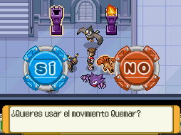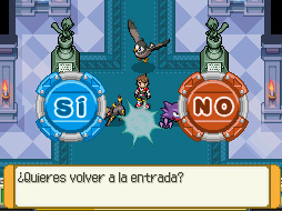 Verás un Mismagius, captúralo ya que nos servirá. Vuelve a donde peleaste con los Seedot del Equipo Pocalux/Team Dim Sun y usa el Movimiento de Campo Poder Psique Nivel 3 de Mismagius con la Puerta. Antes de entrar graba tu partida. Ahora sí, entra.
