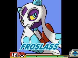 Llegarás, una vez más, a un salón resbaladizo. Ve hacia arriba, luego podrás optar por seguir el camino de la derecha o el de la izquierda (el de la izquierda es más fácil), ve hacia arriba y llegarás a una puerta. Entra y te encontrarás con Gelius, miembro del equipo de los malos, que te atacará con un Froslass. Captúralo y se irá. Allí detrás hay una barrera de luz que no podrás pasar. Sal de allí y tendrás que ir a la puerta izquierda. Entra y captura un Riolu.