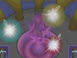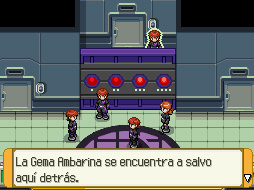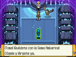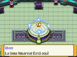 Sal de allí y sube por las escaleras. Avanza hasta el final y dile a Isaac que estás a punto. Adentro, te encontrarás con Gelius quien intentará detenerte con un Gallade. Derrotado,Isaac intentará desactivar la máquina pero no lo logra. Silvano y Lavana aparecen, y junto con Gelius te atacan con Magmortar, Rhyperior y Gallade a la vez. Cuando captures a los tres, escaparán y Gelius te entregará la Gema Ambarina. Usa el Movimiento de campo Electrizar nivel 3 de Ampharos para destruir la bola.