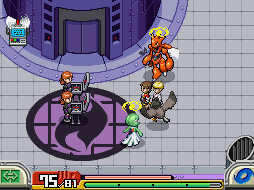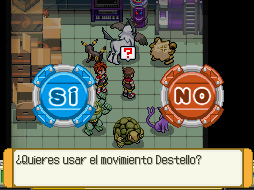 Detrás de las cajas, saldrá un recluta que intentará detenerte con un Espeon y un Umbreon. Sal de allí una vez que lo derrotes. Si entras en la puerta de al lado, subirás al ascensor y aparecerás en la entrada del edificio. Entra en la otra puerta y veremos que un recluta está escondido y al lado un detector de humos que necesitas el Mov. De campo Quemar nivel 3 para activarlo. Sal de allí, ve hacia arriba y verás una puerta obstaculizada por una viga de acero. Usa el movimiento de campo Corte nivel 4 de Absol. Entra y captura al Blaziken y al Scizor. Allí otro recluta intentará detenerte con un Bronzong y Claydol