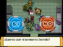 Las luces se apagarán y cuando vuelvan a encenderse aparecerás rodeado de Pocalux Lux/Dim Sun que te atacarán con cinco Spinarak. Avanza hacia abajo y entra en la primer puerta. Ten cuidado con los Pokémon que explotan. Verás una máquina. Usa el movimiento de campo cortar nivel 4 de Scizor para destruirla y capturar al Electabuzz.