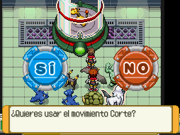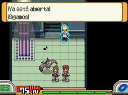 Sal de allí y captura al Absol. Entra a la sala de al lado y usa el Movimiento de zona Destello de Electabuzz. Ve hacia arriba y usa el Movimiento de campo Corte nivel 4 de Absol con la máquina y captura al Ampharos. Sal de allí y ve por el pasillo del medio, captura al Magneton y acércate a la puerta