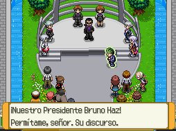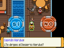 Allí te encontrarás con un grupo musical formado por cuatro miembros de los Pocalux/Dim Sun. El presidente de Altru, Bruno Haz/Blake Hall, vendrá y dará un discurso. Al terminar, un marinero te hablará y te dirá que si quieres viajar a Haruba solo tienes que hablar con él en el puerto. Captura al Staraptor y vete a Portópolis/Pueltown o si quieres puedes ir a pie. Vete al puerto y entra a la casa junto al mar, donde están los marineros. Habla con el de ropa amarilla y dile que quieres ir al Desierto Haruba/Haruba Desert.