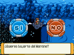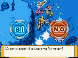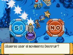 Avanza por el tubo de la derecha y te encontrarás a otro recluta. Dile que quieres salvar al Wailord y te lanzará un Kingdra. Una vez capturado, vuelve a la zona anterior y captura un Huntail. Regresa y usa a Huntail para destruir la última máquina.