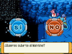 Ya solo quedan dos máquinas. Súbete a la corriente de la derecha y ve hacia arriba. Captura al Mantine y sigue tu camino. Te encontrarás con otro recluta que te lanza tres Starmie. Véncelo y podrás guardar tu partida. Sigue el camino hasta la otra zona, y usa el Movimiento de Zona Nado Abisal de Mantine.