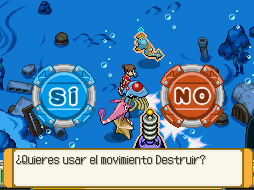 Al vencerlo, escapará por un tubo. Síguelo y verás otra máquina junto a otro miembro. Ve hacia abajo e impúlsate en la corriente. Captura un Huntail, sigue avanzando y te encontrarás con la recluta. Dile que si y te atacará con cuatro Finneon. Al vencerlo, acércate a la máquina y usa a Huntail con su Mov. De Campo Destruir Nivel 3.