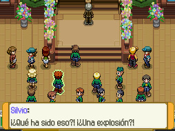 Ya en la ceremonia el director Lamont dará un breve discurso y luego Isaac dará uno. Cuanto te llaman a ti, escucharás una explosión y unos Tangrowth interrumpirán la ceremonia