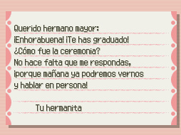 Una vez mas en la ceremonia, te entregarán tu titulo de graduado. Luego de eso, recibirás una carta de tu hermanita