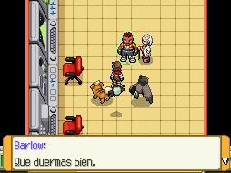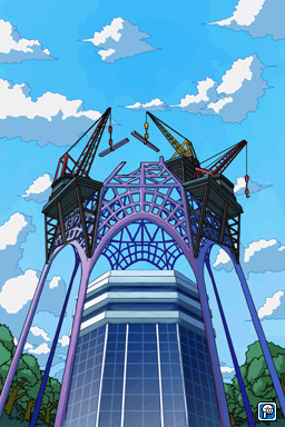 Entra al edificio y sube las escaleras mecánicas. Llegarás a una reunión. Barlow te pedirá que demuestres como destruir un Gigaremo rojo. Usa al Bibarel. El profesorGobios/Hastings hablará sobre estas máquinas. Luego, una Chica te preguntará si elEquipo Pocalux/Team Dim Sun está llevando a cabo un experimento, tu dile que Si a todas sus preguntas.