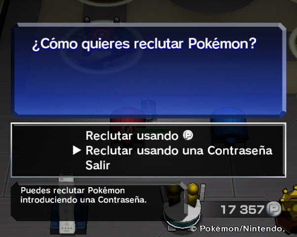 Para introducir contraseñas, debes ir al edificio Reclutar Pokémon y elegir la opción «Reclutar usando una contraseña».