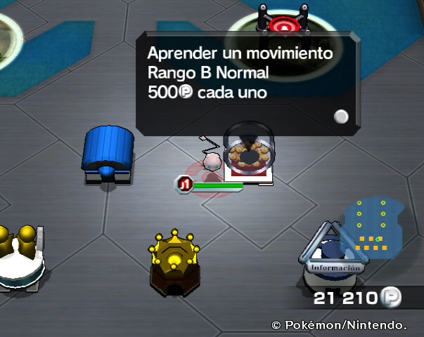 Los muñecos Pokémon no suben de nivel ni, por tanto, aprenden nuevos movimientos por luchar. Para que un muñeco conozca un nuevo ataque hay que ir a este edificio donde, a modo de sorteo, podrás obtener un nuevo movimiento. La fuerza y el coste del movimiento varía según el rango, siendo esta la tabla de precios:
