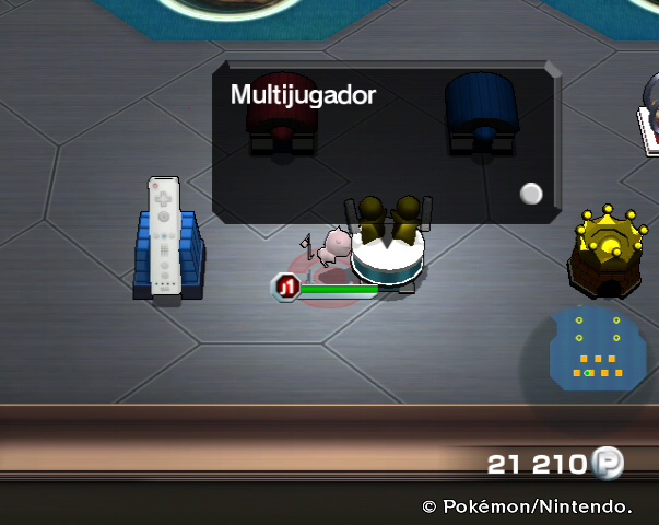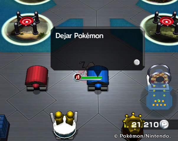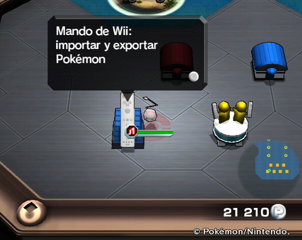 En este edificio podrás almacenar y retirar tus muñecos Pokémon en la memoria del WiiMote para utilizarlo en otro Pokémon Rumble. Ojo que no se crea una copia, sino que se mueven de la memoria del juego a la del mando. Todo muñeco importado de un WiiMote se considera muñeco forastero, y se le aplicarán las restricciones de nivel según el rango actual.